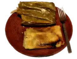 - Tamales, směs kukuřice a masa zabalená v banánovém listu