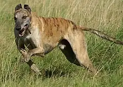 - dolichocefalická plemena (neboli dlouhohlavá) jsou psi s prodlouženou a plochou mozkovnou, často je u nich vystupující týlní kost. Délka hlavy přesahuje její šířku. Čenichová partie je rovněž dlouhá, obvykle s mozkovnou v poměru 1 : 1. Dolicocefalickými plemeny jsou chrti, kolie a jezevčíci. Existuje u nich predispozice k podkusu, kdy je dolní čelist kratší než čelist horní,[62] a ke vzniku oronazálních fistul.[63]