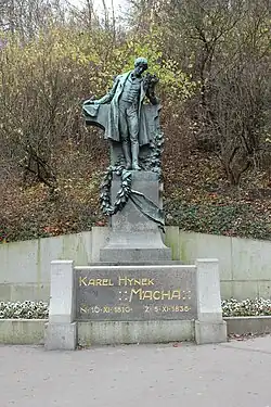 Pomník Karla Hynka MáchyKarel Hynek Mácha (1810–1836), český básník, narozený pod Petřínem. Bronzovásocha stojící, která se pravou rukou, ve které drží pero, opírá o zídku s otevřeným sešitem a v levé ruce drží kytici šeříku. Podstavec je z leštěné žuly. Sochu vyhotovil Josef Václav Myslbek v roce 1912.