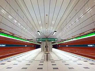 - ↑ a b c HUBERTOVÁ, Kateřina. Architektura nových stanic Áčka se drží vyjetých kolejí. Česká televize [online]. 2015-03-01 [cit. 2015-03-01]. Dostupné online.