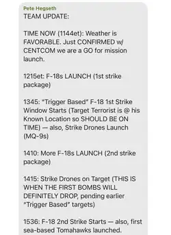 - ↑ NOVÁČKOVÁ, Michaela. Hegseth se nepoučil. O tajných vojenských operacích si psal i s manželkou. Aktuálně.cz [online]. Economia, 2025-04-23 [cit. 2025-04-23]. Dostupné online.