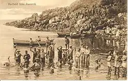 Män ur Landstormen på en klippig strand -