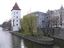 Ostrov po skončení husitských válek získala pražská obec. Roku 1483 povolila mlynáři a pekaři Janu Petržilkovi postavit při ostrově „na místě spáleného mlýna mlýn nový“ a vedle mlýna postavila dřevěnou vodárnu vně hradeb Malé Strany. Petržilka vlastnil mlýn do roku 1523, kdy jej směnil.[1]