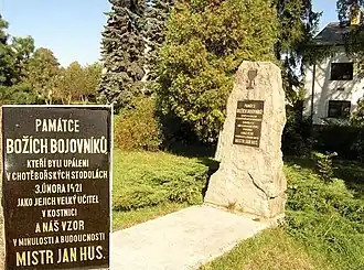 Událost v Chotěboři připomíná pomníček, postavený v roce 1929 v zahradě před č.p. 607, tehdy městskou elektrárnou, kde údajně stály stodoly, a také pojmenování jedné chotěbořské ulice na „Hromádky z Jistebnice“.