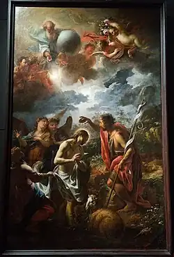 Obraz Křest Krista na hlavním oltáři kostela sv. Jana Křtitele v Manětíně (1715–1716)