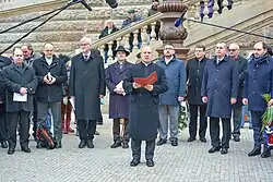 Petr Jan Vinš na pietním setkání k výročí upálení Jana Palacha pořádaném ERC (druhý zprava).