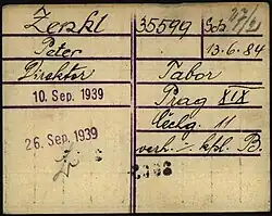 - ↑ a b Matriční záznam o narození a křtu (2. shora) jako Petr Antonín Zenkl; podle přípisů oddán na Smíchově 13. 11. 1909 a bez vyznání od 10. 2. 1921