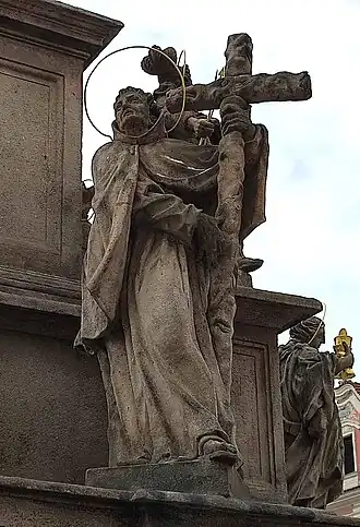 - Sochy na oltářích františkánských a karmelitánských kostelů; na morových sloupech