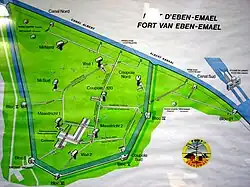 Pevnost Eben-Emael byla vybudována v letech 1932 - 1938 k zastavení invazního postupu německé armády za 2. světové války a současně mohla dělostřeleckým postřelováním ze 7 silných dělostřeleckých baterií krýt mosty, které byly vybudovány přes řeku Mázu.