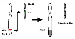 Zmíněný gen c-abl však je onkogenní a jeho mutace v bílých krvinkách způsobuje v tomto případě rakovinné bujení. Philadelphské chromozomy zapříčiňují až 85% myelogenních a akutních leukemií.[1] Jméno tento chromozom dostal podle města Philadelphia, kde byl poprvé objeven.[2]