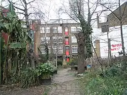Zahrada, která byla postavena na parkovišti v roce 1980, které bylo upraveno na místě bombového útoky z druhé světové války (místo bylo bombardováno v roce 1940).
