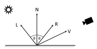 Lesklá složka udává intenzitu té části světla, která se od tělesa odráží převážně v jednom směru podle zákona odrazu.