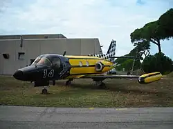 ![]() Prototyp MM577 v barvách italských vzdušných sil na letecké výstavě v Hannoveru, 1966 | |