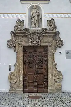 - ↑ WAISSEROVÁ, Jana. Piaristická kolej a její portál. Litomyšl, 1993. Seminární práce. Škola restaurování a konzervačních technik v Litomyšli. s. 7–8.