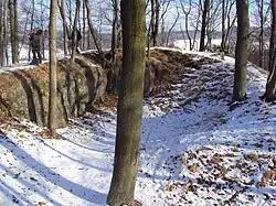 V horních partiích Pihelského vrchu jsou dosud patrné stopy někdejší existence místního hradu.