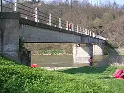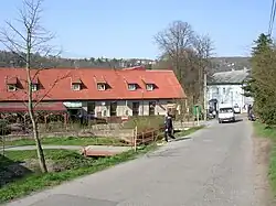 Přes řeku vedl v historii brod na staré formanské cestě, případně přívoz.[6] V roce 1926 jsou zmiňovány dva přívozy, jeden na začátku obce u mlýna, druhý u železniční zastávky.[7] Roku 1937 byl přívoz nahrazen novou, betonovou lávkou.[4]