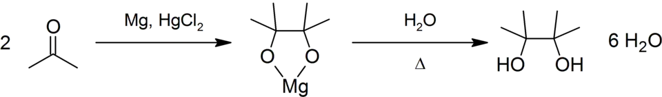 Pinakol lze připravit pinakolovou reakcí z acetonu:[2]