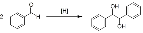 U benzofenonu může pinakolové párování proběhnout fotochemicky.[2] Benzaldehyd lze do této reakce zapojit za použití hliníku jako redukčního činidla a chloridu vanaditého jako katalyzátorů.[3] Při provádění této reakce po dobu 3 dnů ve vodě [za pokojové teploty bylo dosaženo 72% výtěžnosti a poměr dl:meso činil 56:44.