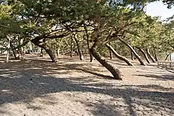 Stromy jsou tolerantní vůči slaným větrům, což z nich dělá druh dobře přežívající i na větrném mořském pobřeží. Tam se následkem pravidelných větrů jejich kmeny při růstu ohýbají a koruny se při dlouhodobém vystavení větrům zplošťují.[2][3][8][10][11]