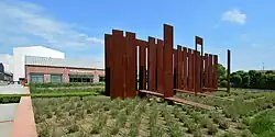 Před vstupem do muzea se nachází rozměrná plastika italského sochaře Fausta Melottiho s názvem Sequence z roku 1981.[1]