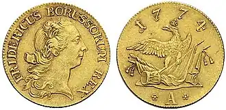 Na lícové straně "Friedrich d'or" byla králova hlava a na zadní straně byla vyryta jeho orlice. Mince byla pravidelně vydávána jako zlatá obchodní mince od roku 1741 do roku 1855.