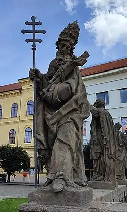 | Atributy | papežský oděv, krucifix |