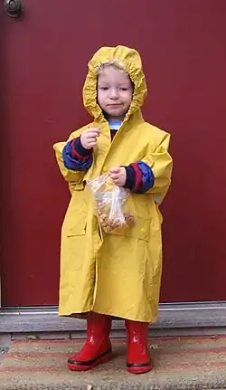 - ↑ GREATREX, Tom. History of the Raincoat. LoveToKnow [online]. [cit. 2020-03-21]. Dostupné online. (anglicky)