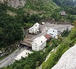 Karnischer Höhenweg křižuje silnici Plöcken Pass u Plöckenhausu (1244 m n. m.)