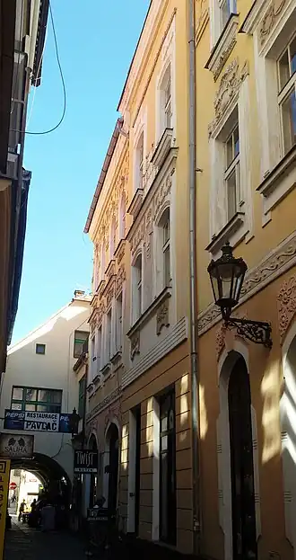 - ↑ a b c SCHINKO, Jan. DRBNA HISTORIČKA: Dříve se pro Plachého uličku používal též název Durchhaus. Budějcká drbna [online]. 2018-09-13 [cit. 2020-07-02]. Dostupné online.