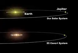 Naše sluneční soustava v porovnání s planetární soustavou 55 Cancri