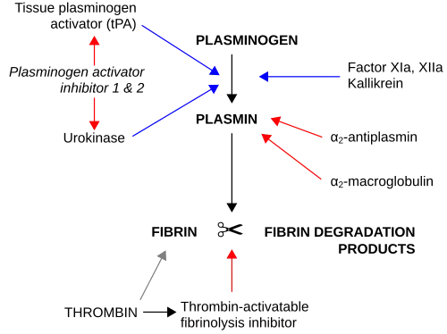 Plazmin je inaktivován alfa 2-antiplazminem (inhibitore serinových proteáz - tzv.serpin). [4][5]