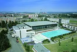 Budování plaveckého areálu probíhalo v letech 1978–1985. Budovu navrhl tým projektantů v čele s Ing. arch. Pavlem Němečkem, CSc. Zázemí plaveckého bazénu tvoří tři podlaží. Roku 1986 se návštěvníkům otevřel krytý bazén a v roce 1987 byl dostavěn venkovní plavecký bazén.