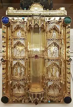 - Podle jedné pověsti se Přemysl Otakar II. zmocnil relikvie v Uhrách při vítězné bitvě u Kressenbrunnu. V této bitvě Boreš z Rýzmburka ukořistil relikvii prstu sv. Jana Křtitele, který byl později uchováván v oseckém klášteře. O dalších relikviích informace chybí. Po této bitvě k žádnému plenění nedošlo.