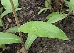 Vytrvalá, trsnatá bylina vysoká 20 až 50 cm, která má přímou a jednoduchou lodyhu vysokou 20 až 40 cm a vyrůstá z krátkého vícehlavého oddenku, jež má spoustu vláknitých kořínku. Listy v přízemní růžici mají dlouhý, křídlatý řapík a jejich chlupatá, celistvá, šedě zelená čepel bývá dlouhá 20 až 30 cm a široká 5 až 9 cm. Je tvaru široce vejčitého, u báze je náhle zúžená a na vrcholu tupě zašpičatělá; celé listy se zvětšují ještě i po odkvětu. Dlouze chlupatá lodyha mívá čtyři až osm, střídavě vyrůstajících, podlouhlých či vejčitě kopinatých, zelených, neskvrnitých, celistvých a oboustranně chlupatých listů. Lodyžní listy jsou dlouhé 4 až 6 cm, široké 1 až 2 cm a svou poloobjímavou bázi k lodyze přisedají. V trsu jedné rostliny společně vyrůstá pět až šest lodyh, z nichž všechny nebývají kvetoucí.
