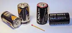 Jmenovité napětí článku je 1,5 V. Bývá vyráběn nejčastěji ve velikostech AAA (mikrotužková baterie), AA (tužková baterie), C (malý monočlánek) a D (velký monočlánek). Kromě toho se vyrábějí také baterie těchto článků: 3 články – „plochá baterie“ a 6 článků – „devítivoltová baterie“.