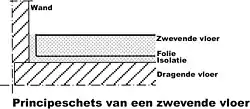 Plovoucí podlaha sestává z několika vrstev. Vespod leží podkladní vrstva podlahy, na ní je zvukově izolační vrstva, tvořená různými druhy stavebních akustických izolací, dále vrstva roznášecí a vrstva nášlapná, tvořící vrchní část skladby.