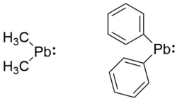 - ↑ KLINKHAMMER, Karl W.; FÄSSLER, Thomas F.; GRÜTZMACHER, Hansjörg. The Formation of Heteroleptic Carbene Homologues by Ligand Exchange— Synthesis of the First Plumbanediyl Dimer. Angewandte Chemie International Edition. 1998, s. 124–126. ISSN 1521-3773. doi:10.1002/(sici)1521-3773(19980202)37:1/2<124::aid-anie124>3.0.co;2-c.