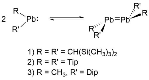 - ↑ STÜRMANN, Martin; SAAK, Wolfgang; MARSMANN, Heinrich; WEIDENBRUCH, Manfred. Tetrakis(2,4,6‐triisopropylphenyl)diplumbene: A Molecule with a Lead–Lead Double Bond. Angewandte Chemie International Edition. 1999, s. 187–189. ISSN 1521-3773. doi:10.1002/(sici)1521-3773(19990115)38:1/2<187::aid-anie187>3.0.co;2-2.