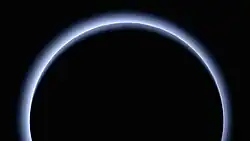 - ↑ MILLIS, R. L., et al. Pluto's Radius and Atmosphere: Results from the Entire 9 June 1988 Occultation Data Set. Icarus. Říjen 1993, roč. 105, čís. 2, s. 282–297. ISSN 0019-1035. doi:10.1006/icar.1993.1126. Bibcode: 1993Icar..105..282M. (anglicky)