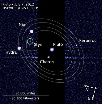 - ↑ SANDERS, Ray. Hubble Space Telescope detects fifth moon of Pluto (Update). Phys.org [online]. 2012-7-11. Dostupné online. (anglicky)