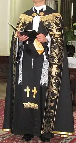 - ↑ PLUVIALE, Glossarium mediae et infimae latinitatis, Du Cange et al.. ducange.enc.sorbonne.fr [online]. [cit. 2022-11-29]. Dostupné online. (latinsky) Německy také Rauchmantel – kouřový plášť aj. ATZ, Karl. Die Christliche Kunst in Wort und Bild oder ein praktisches Handbuch zur Erforschung und Erhaltung der Kunstdenkmale: mit mancherlei Fingerzeigen bei Restaurierungen oder neuen Werken. Regensburg: Nationale-Verlagsanstalt, 1899, s. 435. Dostupné také z: https://www.digitalniknihovna.cz/ntk/uuid/uuid:870f6022-dbd6-11ee-8615-001b63bd97ba.