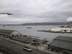 V roce 1873 oznámila železnice Northern Pacific Railway, že západní konec její transkontinentální trasy se bude nacházet na pobřeží zálivu. V roce 1883 byla železnice dostavěna právě až sem, což v Tacomě způsobilo ohromné zrychlení rozvoje. Železniční zázemí se nacházelo vedle wattových pobřeží při ústí řeky Puyallup, téměř dva kilometry od centra Tacomy. Kolem stanice bylo brzy vybudováno nové město, zvané New Tacoma, které se však brzy s původní Tacomou spojilo. Železnice poskytovala osadníkům velké dotace půdy na pobřeží zálivu, časem však tuto půdu koupilo město samotné.