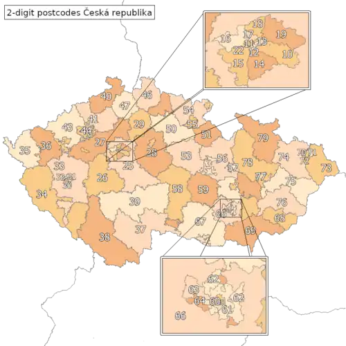 - ↑ Český statistický úřad: Poštovní směrovací číslo [online]. Český statistický úřad [cit. 2023-01-03]. Dostupné online.