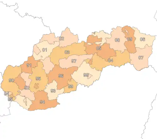 - 0 Středoslovenský kraj (severní část) a Východoslovenský kraj