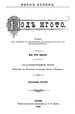 Autor se držel známých poměrů; městečko Bjala Čerkva, kde se příběh odehrává, odkazuje na Vazovovo rodné město Sopot (dříve neslo také po nějakou dobu jeho jméno), a ačkoliv jsou postavy, které se v románu vyskytují, povětšinou fiktivní, občas se mezi nimi objevují i reálné historické osobnosti. Hlavní hrdina Bojčo Ogňanov je však přece jen spíše než realistický bojovník za nezávislost Bulharska romantický snílek a revolucionář, mající daleko k jakékoliv jiné postavě, která přispěla k boji Bulharska za nezávislost na Osmanské říši. Román Pod jařmem byl přeložen celkem do 30 jazyků a v Bulharsku patří k základním dílům národní literatury. Dílo bylo také v roce 1952 zfilmováno.