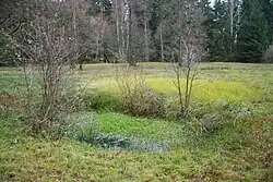 Okraje a východní část se postupně přeměňují na vlhkou pcháčovou louku (svaz Calthion), která se vyznačuje zástupci druhů bylinného patra jako je skřípina lesní (Scirpus sylvaticus), pcháč bahenní (Cirsium palustre), pcháč zelinný (C. oleraceum) a blatouch bahenní (Caltha palustris), travinné spektrum je zde reprezentováno hlavně třeslicí prostřední (Briza media), medyňkem vlnatým (Holcus lanatus) a ostřicí obecnou (Carex nigra).[6]
