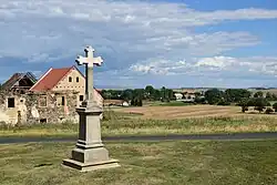 Dominantou horní části návsi je původně gotický kostel svatého Vavřince ze druhé poloviny čtrnáctého století, který svou dochovanou podobu získal při barokní přestavbě v roce 1701.[20] Pod hřbitovní zdí, která kostel obklopuje, stojí socha svatého Jana Nepomuckého z roku 1775 (Emanuel Poche uvádí rok 1770[20]) od Jakuba Eberleho[21] a socha Panny Marie byla umístěna přímo na hřbitov ke kostelu. Poslední kulturní památkou ve vesnici je areál fary[20] z konce osmnáctého století. Tvoří jej hlavní patrová budova s valbovou střechou a dvě přízemní budovy určené k hospodářským a obytným účelům. Do dvora se vjíždí bránou mezi průčelími budov. Hlavní budova je v havarijním stavu.[22] U hřbitovní zdi roste skupina patnácti lip malolistých.[23]