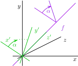kde a jsou souřadnice vektorů takových, že je obrazem při uvedené rotaci.