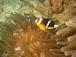 Sasanka velkolepá (Heteractis magnifica) a rezidentí ryba (Amphiprion ocellaris) (klaun očkatý), Východní Timor