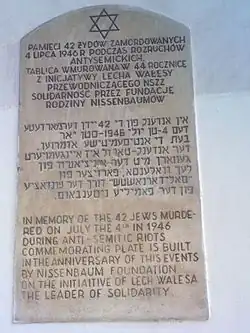 Pogrom v Kielcích byl dne 4. července 1946. Tehdy bylo více než 40 polských Židů zavražděno[1] a dalších 80 zraněno v Kielcích poté, co se rozšířila fáma o únosu křesťanského chlapce. Mezi oběťmi byli dva nežidovští Poláci, kteří přispěchali na pomoc napadeným.